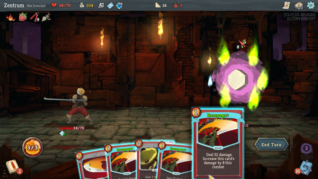 A roguelike card game with a practically infinite amount of deck synergies. While the game can be completed without any real strategy, the actual (optional) final boss challenges you to retry and rethink your strategies to perfection. Perfect for hardcore players that seek a bigger challenge, yet it doesn’t force more casual players to do the impossible.